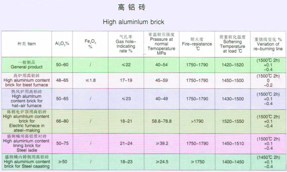 氧化铝含量在48%以上的一种中性耐火材料。由矾土或其他氧化铝含量较高的原料经成型和煅烧而成。热稳定性高,耐火度在1770℃以上。抗渣性较好。用于砌筑炼钢电炉、玻璃熔炉、水泥回转炉等的衬里。